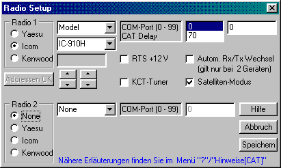 Im obigen Menü 'Radio-Setup' können alle Einstellungen für die CAT-Steuerung aller unterstützten Funkgeräte vorgenommen werden.