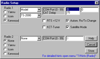 All settings regarding CAT steering (brand, model, CAT baudrate) can be done in the window "Radio Setup".