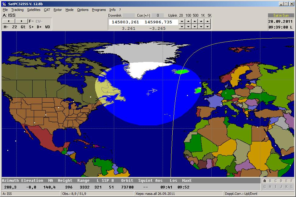 Screenshot of SatPC32ISS, a special program version for radio amateur operation