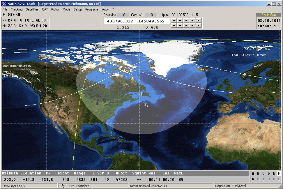 Screeshot of SO-50. The satellite allows FM QSOs with uplink on
