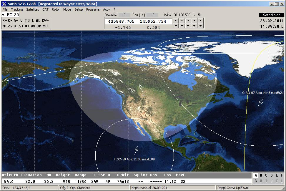shows the area of visibility of FO-29 at the time shown above. The satellite